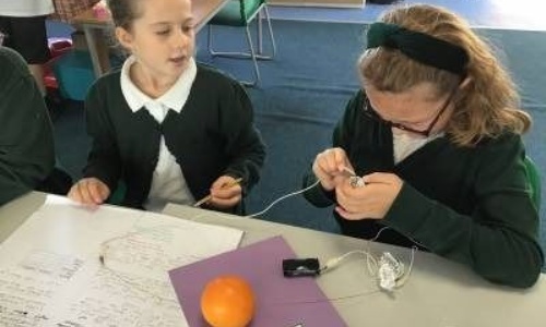 We were really surprised that the orange became a conductor and lit the lamp!