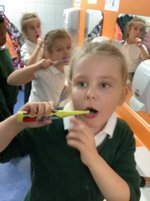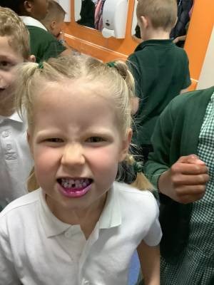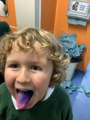 In science this week, Year 2 have been learning about teeth and how to keep our teeth healthy. They have found out that we should not have too much sugar and we need to make sure we brush our teeth regularly and correctly. We brushed our teeth and then used disclosing tablets to find out how well we cleaned our teeth. A lot of mouths turned blue and red and then purple!